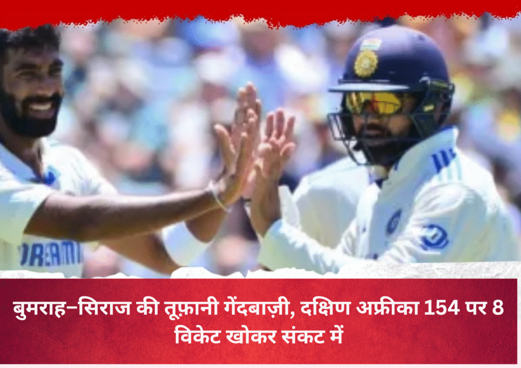 बुमराह–सिराज की तूफ़ानी गेंदबाज़ी, दक्षिण अफ्रीका 154 पर 8 विकेट खोकर संकट में