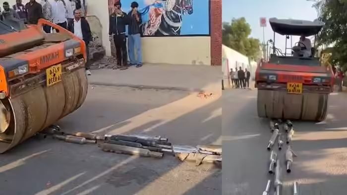 जयपुर में पुलिस का सख्त एक्शन, 150 मॉडिफाइड साइलेंसर कुचलकर किया गया नष्ट