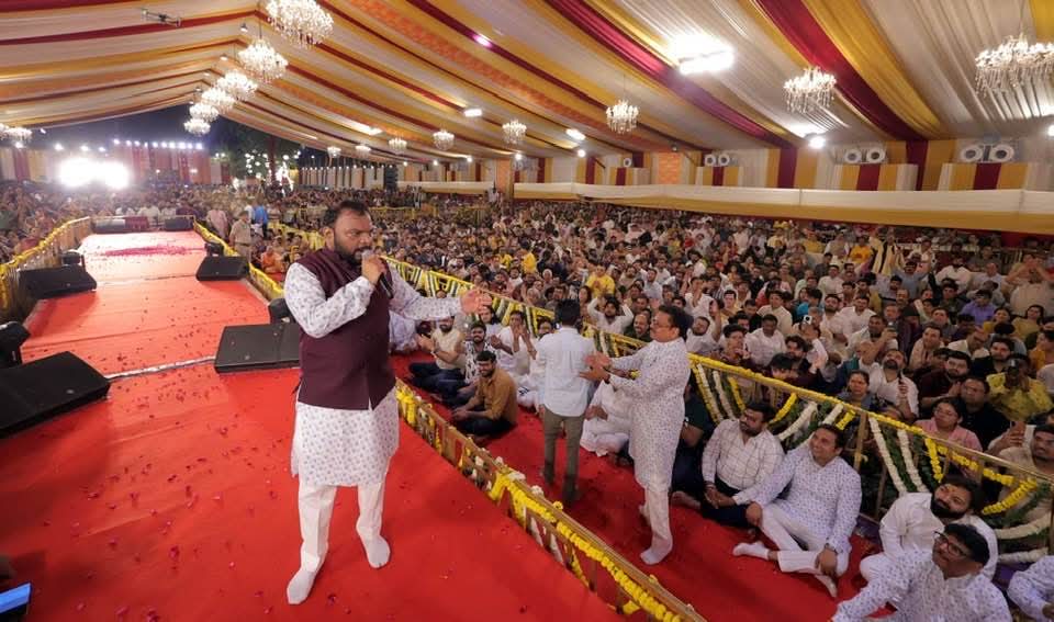 हर वर्ष की भांति इस बार भी हिन्दू नववर्ष विक्रम संवत 2083 के मौके पर पूर्व मुख्यमंत्री एवं केंद्रीय मंत्री मनोहर लाल के पूर्व राजनैतिक सचिव एवं वरिष्ठ भाजपा नेता अजय गौड़ तथा जय श्री राम मित्र मंडल के संयुक्त तत्वाधान में सेक्टर-17 स्थित हुडा ग्राउंड में ‘एक शाम सांवरिया के नाम’ धार्मिक कार्यक्रम का आयोजन किया गया। कार्यक्रम में शहर के हजारों लोगों ने शिरकत करते हुए इस भक्तिमय संध्या का आनंद उठाया। सर्वप्रथम ब्रह्मलीन गुरु मां सावित्री बाई जी के सुपौत्र राहुल शर्मा (सन्नी भईया) ने ज्योत प्रचण्ड करके कार्यक्रम का शुभारंभ किया। इसके उपरांत प्रसिद्ध भजन गायक कन्हैया मित्तल ने खाटू श्याम बाबा के प्रसिद्ध भजनों से समां बांध दिया। इस दौरान उन्होंने ‘हारा हूं बाबा पर तुझपे भरोसा है, जीतूंगा एक दिन मेरा दिल ये कहता है, ‘ओ सांवरे मुझे तेरी जरुरत है, ‘गजब मेरे खाटू वाले गजब थारे ठाठ निराले, ‘सेठों के सेठ बाबा श्याम है, ‘हम हारे हारे हारे तुम हारे के सहारे’ जैसे भजन गाए, जिससे वहां मौजूद भक्तजन भाव विभोर होते हुए जमकर झूमे। इसी के साथ-साथ कोलकाता से आए प्रसिद्ध कलाकार शुभम रुपम की जोड़ी, कानपुर से श्री राम पाण्डेय जी सहित अन्य कलाकारों ने भी अपने-अपने भजनों मेें श्याम बाबा का जमकर गुणगान किया और भक्तजनों का मन मोहा। कार्यक्रम में श्री सिद्धदाता आश्रम के अधिष्ठाता श्रीमद जगदगुरु रामानुजाचार्य स्वामी श्रीपुरुषोत्तमाचार्य जी महाराज ने भी शिरकत करके भक्तजनों को आर्शीवाद दिया और कार्यक्रम की जमकर प्रशंसा की। इस मौके पर केंद्रीय राज्यमंत्री चौ. कृष्णपाल गुर्जर, हरियाणा विधानसभा के डिप्टी स्पीकर कृष्णलाल मिड्ढा, पवन जिंदल, कैबिनेट मंत्री विपुल गोयल, राज्यमंत्री राजेश नागर, गौरव गौतम, पूर्व कैबिनेट मंत्री पं. मूलचंद शर्मा, महापौर प्रवीण बत्रा जोशी, विधायक हरेंद्र रामरत्न, कृष्ण कुमार, कंवर सिंह यादव, सतीश फागना, धनेश अदलखा सहित अनेकों गणमान्य लोगों ने शिरकत करते हुए बाबा के दरबार में हाजिरी लगाई। कार्यक्रम में उपस्थित भक्तजनों को संबोधित करते हुए केंद्रीय राज्यमंत्री कृष्णपाल गुर्जर व डिप्टी स्पीकर कृष्णलाल मिड्ढा ने संयुक्त रुप से इस धार्मिक आयोजन की भूरि-भूरि प्रशंसा करते हुए अजय गौड़ व जय श्री राम मित्र मंडल की जमकर हौंसला अफजाई की। उन्होंने कहा कि यह आयोजन बहुत ही बेहतरीन है, जिसके लिए अजय गौड़ और उनकी पूरी टीम बधाई की पात्र है। कार्यक्रम में जो उच्चस्तरीय व्यवस्थाएं की गई है, उसके चलते यहां हजारों की संख्या में भक्तजन पहुंचकर इस धार्मिक आयोजन का जमकर आनंद उठा रहे है। उन्होंने कहा कि नवरात्रों के मौके पर इस प्रकार के धार्मिक आयोजनों से समाज में सुख-समृद्धि का आगमन होता 