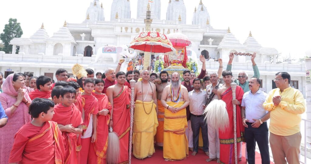 फरीदाबाद , अंजनी पुत्र महाबल दाई, संतन के प्रभु सदा सहाई। ऐसे ही गुणगान करते हुए गुरुवार को सूरजकुंड मार्ग स्थित श्रीलक्ष्मीनारायण दिव्यधाम-श्रीसिद्धदाता आश्रम में श्रीरामभक्त श्रीहनुमान जी का जन्मोत्सव आस्था और श्रद्धा के साथ धूमधाम से मनाया गया। श्रीरामानुज संप्रदाय के पवित्र तीर्थ पीठ इंद्रप्रस्थ एवं हरियाणा के पीठाधीश्वर अनंत विभूषित श्रीमद जगदगुरु श्रीरामानुजाचार्य […]